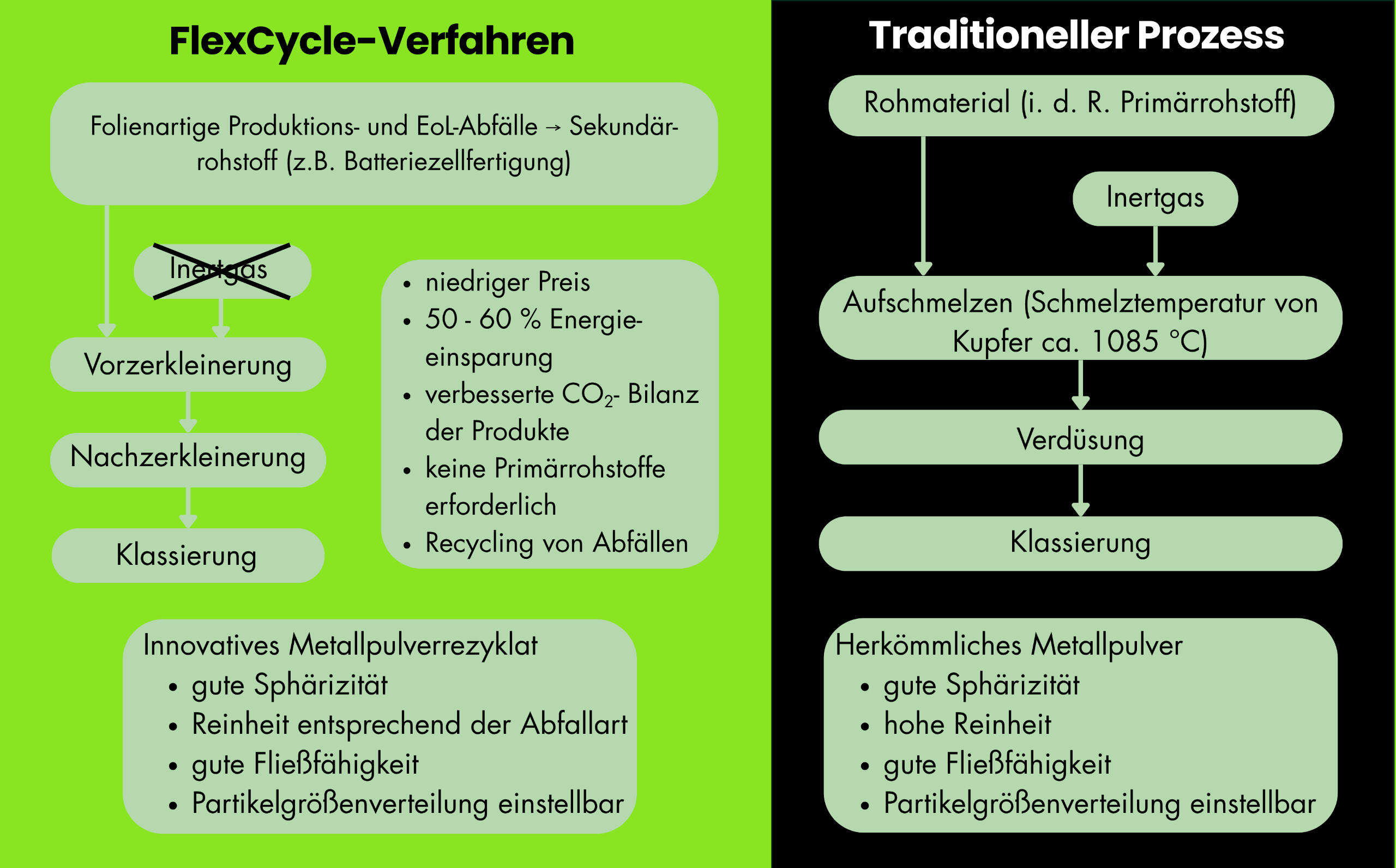 Die Zukunft der Additiven Fertigung beginnt jetzt – mit nachhaltigem Kupferpulver aus ReststoffenDie Additive Fertigung erlebt ein rasantes Wachstum – und mit ihr steigt der Bedarf an hochwertigen, ressourcenschonenden und zugleich kosteneffizienten Werkstoffen. Besonders Kupferpulver spielt dabei eine zentrale Rolle, etwa in der Elektronik-, Batterie- oder Wärmetechnik.Doch herkömmliche Herstellungsverfahren sind energieintensiv, teuer und wenig nachhaltig. Gleichzeitig fallen in der Batterie- und Elektronikindustrie große Mengen metallischer Reststoffe an, die bislang ungenutzt bleiben – oder nur durch aufwendige metallurgische Prozesse recycelt werden.Wir ändern das.Effizient. Nachhaltig. Zukunftsweisend.
